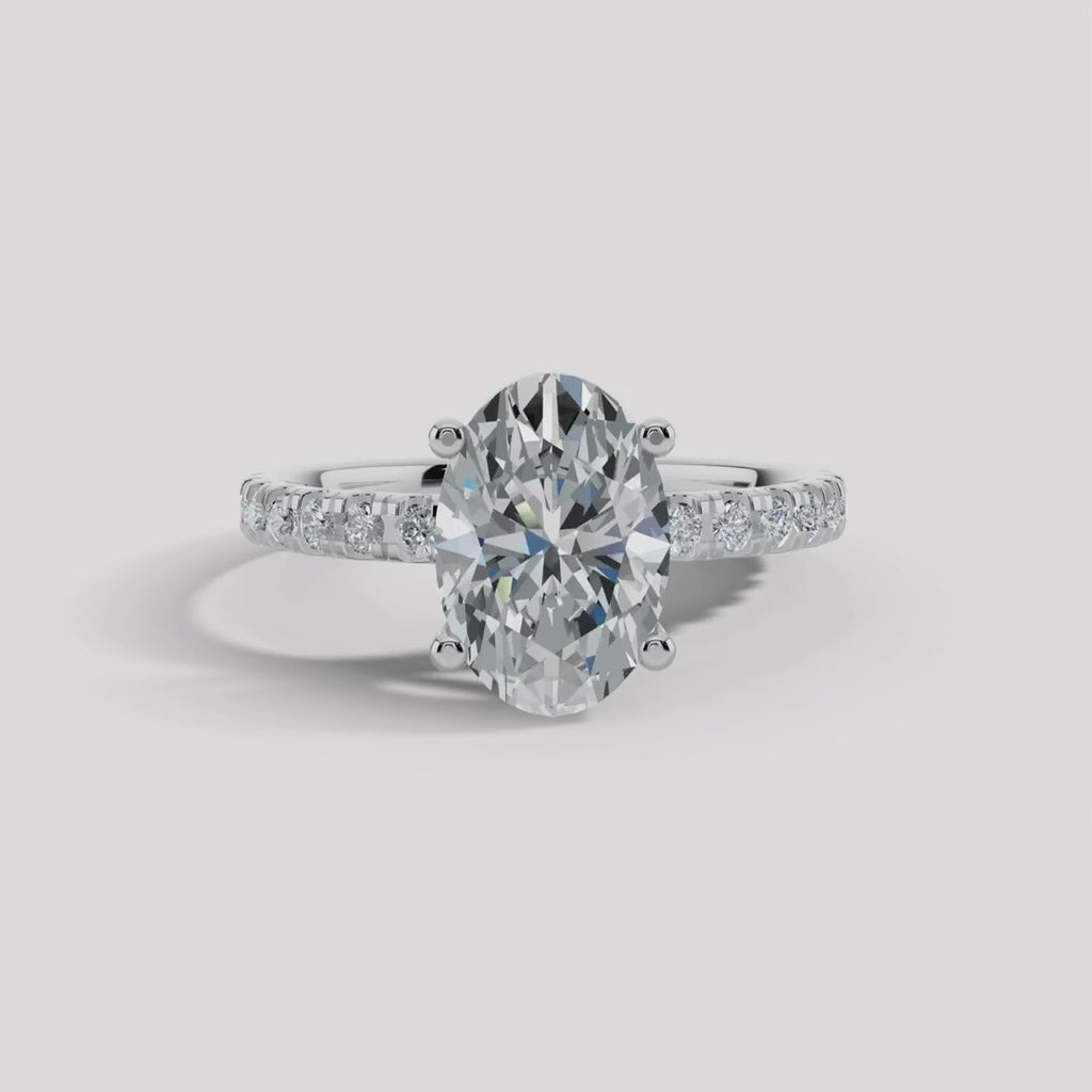 This breathtaking 3 carat engagement ring is a true masterpiece, featuring a dazzling oval-cut diamond as its center piece. Designed to embody elegance and sophistication, this ring combines timeless beauty with modern craftsmanship to create a one-of-a-kind statement piece.