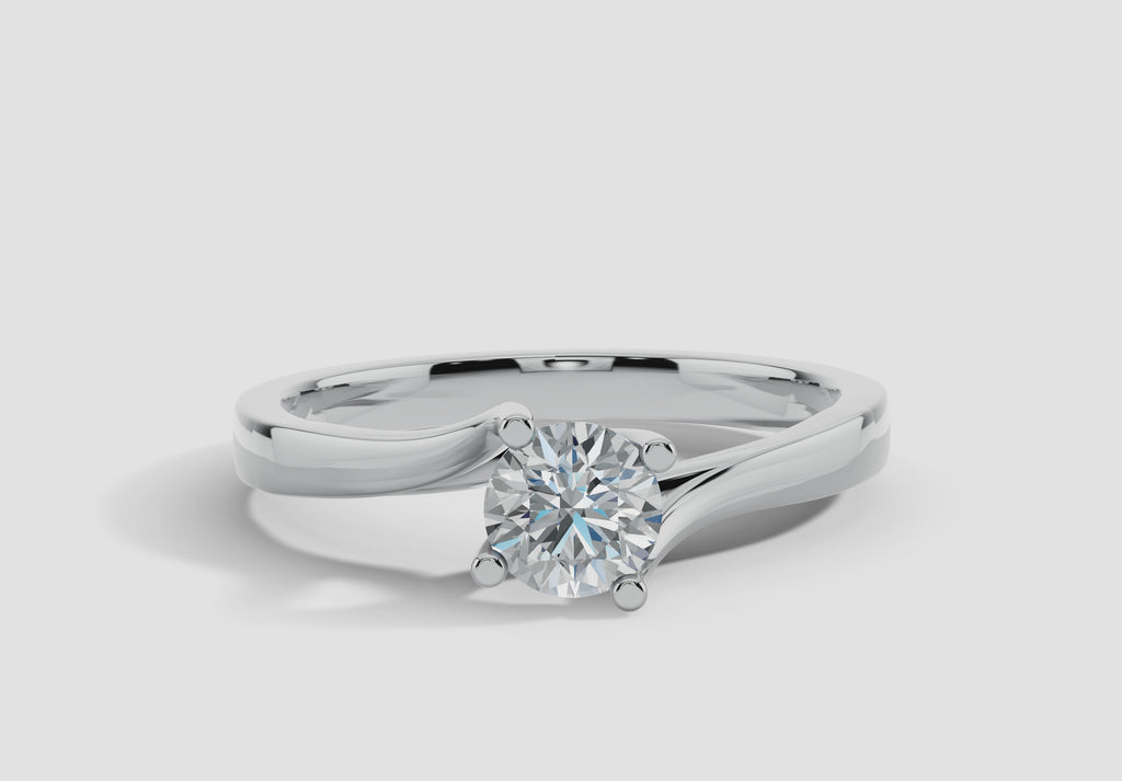 This exquisite solitaire ring embodies timeless elegance with a modern twist. Showcasing a stunning 2-carat round diamond at its heart, the design is elevated by a gracefully twisted diamond shoulder, adding depth and brilliance. Set in a sleek platinum band, this piece seamlessly blends classic sophistication with contemporary allure.