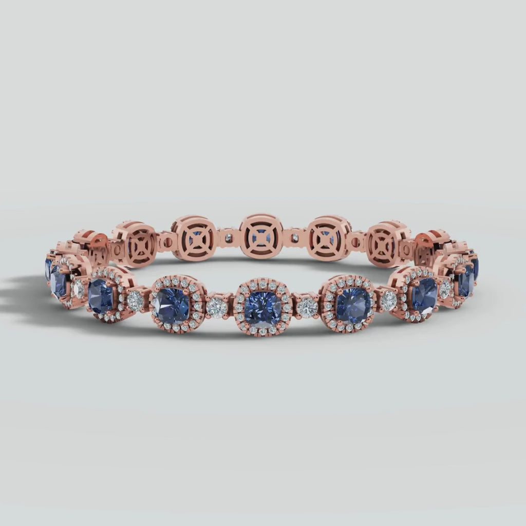 Elevate your wrist game with our exquisite diamond and sapphire bracelet—a true embodiment of modern luxury. Crafted with precision, this bracelet seamlessly blends timeless design with eco-conscious materials. Available in white gold, yellow gold, rose gold as well as platinum. Choose between lab grown or natural diamonds, each reflecting brilliance and ethical elegance.