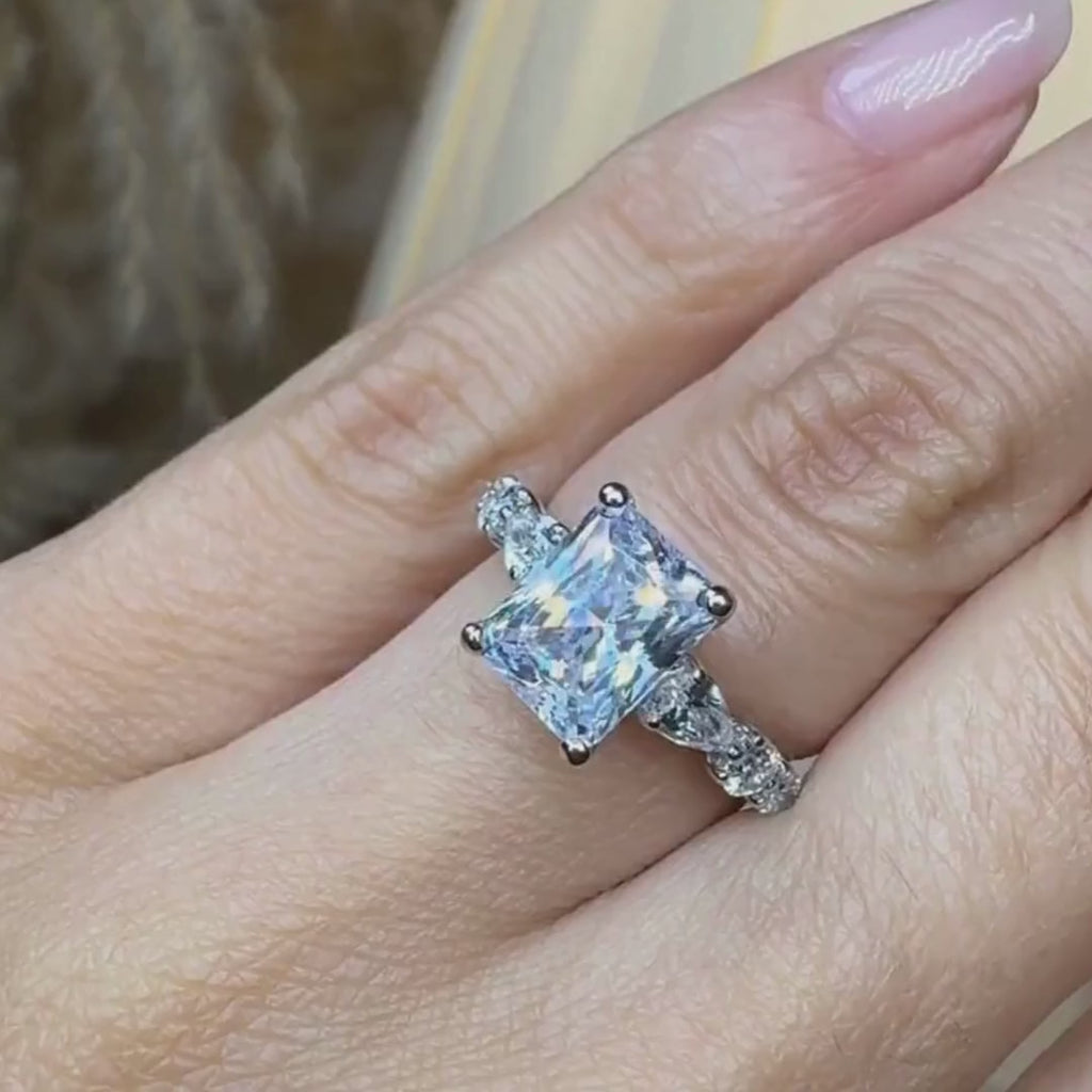 Center Stone: 2-carat radiant-cut diamond and 0.3 ct side diamond — bold, brilliant, and beautifully angular. D colour VS2 clarity.