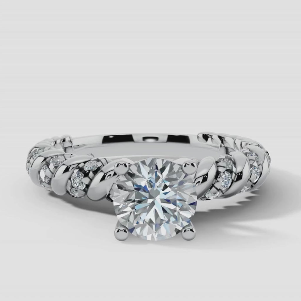 "Grettel" Round Cut 3 Carat Twisted Spiral Diamond Shoulder Engagement Ring DSRB20
