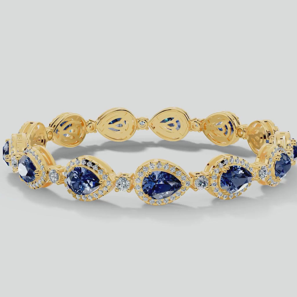 Elevate your wrist game with our exquisite diamond and sapphire bracelet—a true embodiment of modern luxury. Crafted with precision, this bracelet seamlessly blends timeless design with eco-conscious materials. Available in white gold, yellow gold, rose gold as well as platinum. Choose between lab grown or natural diamonds, each reflecting brilliance and ethical elegance.