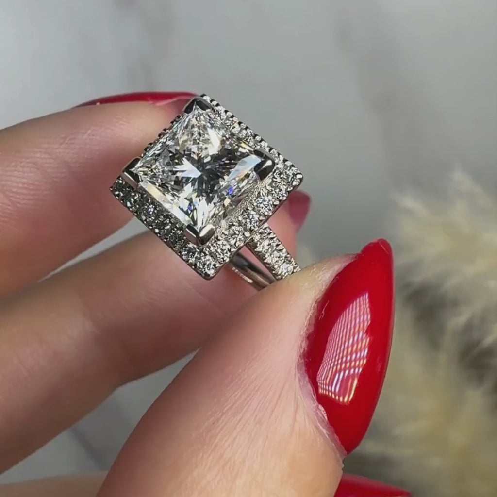 This princess-cut marvel is a perfect blend of timeless charm and contemporary brilliance. Featuring a stunning 2-carat princess-cut center stone, its sharp edges and captivating sparkle make a bold statement.