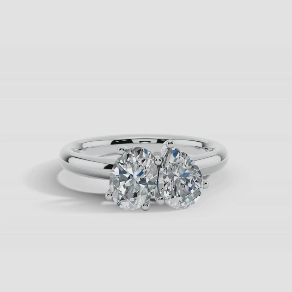 Elegant and symbolic, this Toi et Moi platinum engagement ring brings together a 1-carat pear-cut diamond and a 0.75-carat oval-cut diamond, each representing the unique journey of two hearts bound by love. Different in shape yet united in purpose, the pair reflects a beautiful harmony—soft curves, endless brilliance, and timeless sentiment.