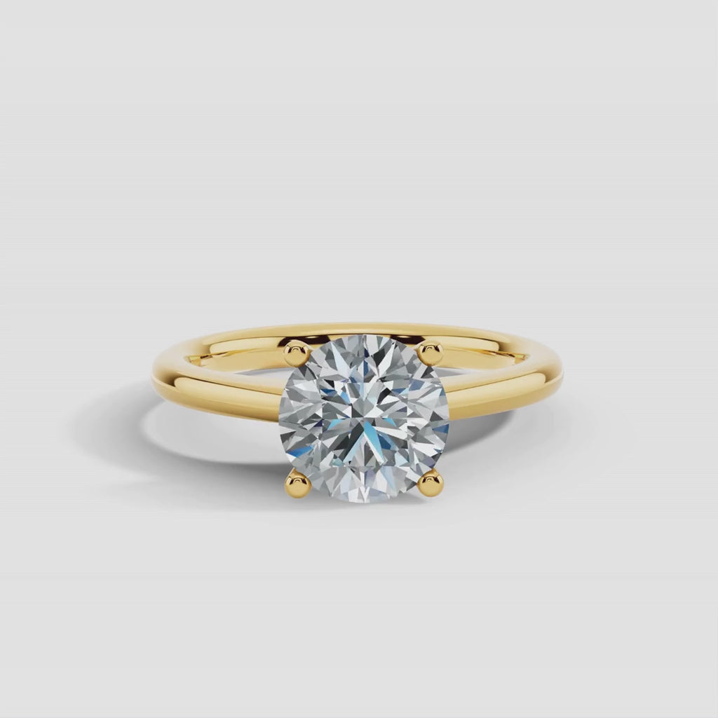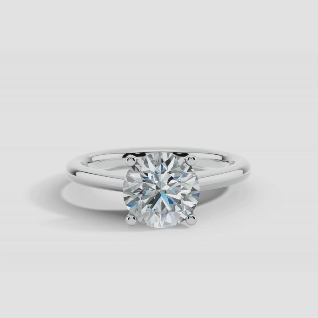 - This solitaire ring features a round brilliant cut diamond.