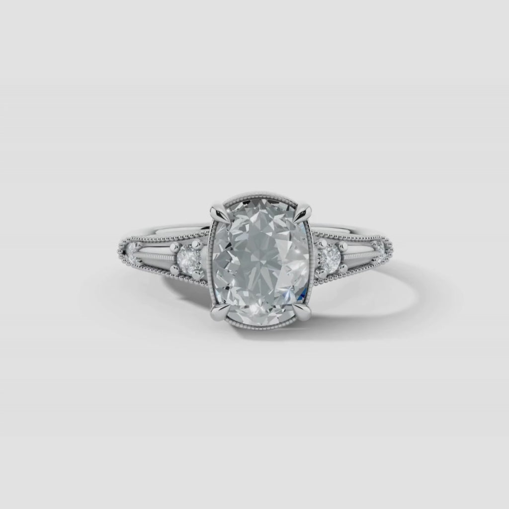 Side Stones: Two smaller oval-cut diamonds flanking the center, adding harmony and flow.